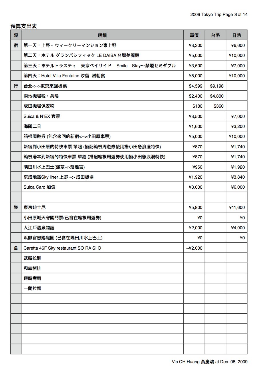 趁著2009年國際旅展時買了 台北-東京 五天 旅行計劃機票